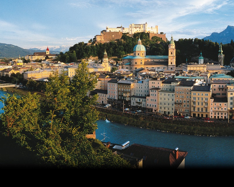 Přímo v srdci města se zvedají úchvatné příkré skály s pevností Hohensalzburg. Návštěva tohoto největšího dokonale zachovalého pevnostního hradu ve Střední Evropě je nejlepší předehrou k poznání Salcburku ze dvou důvodů: zprostředkuje návštěvníkovi ideální přehled o tom, kam se má následně vydat - k raně barokní arcibiskupské rezidenci Erzbischöfliche Residenz s nádhernými interiéry galerií, ve které najdeme díla evropských malířů 16.-19. století. Majestátní opevnění zároveň zprostředkovává silný pocit salcburské historické atmosféry, která ovlivnila i Wolfganga Amadea Mozarta. Stopy génia jsou spolehlivou červenou nití, která Vás provede nejprve Salcburskou katedrálou, kde byl Mozart pokřtěn, dále Mozartovým rodným domem v malebné Obilné uličce (Getreidegasse), ve kterém tento nadaný skladatel uslyšel své první tóny nebo Mozartovým domem, kde skladatel osm let žil. Večer ponořují lucerny úzké staroměstské domky a romantická zákoutí do měkkého světla. Žádný div, že tato neporušená středověká městská čtvrť byla vyhlášena jako kulturní dědictví UNESCO. Mozart dokázal pomocí své barokní hudby poskládat hudební svět. Avšak i stavební mistři té doby svým uměním Salzburg štědře podarovali. Nepravidelné linie a živé barvy baroka jsou na zámku Mirabell obklopeném květinami očividné. V blízkosti města se nachází také zámek Hellbrunn, který s lehkostí napájí nesčetné množství vodních fontán, které skýtají mnoho mokrých překvapení.